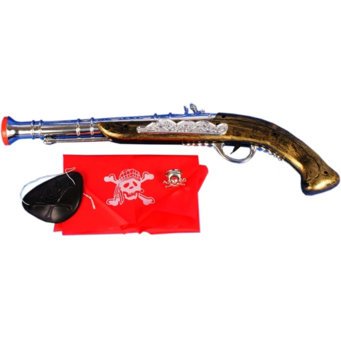 Fashion Angels Kalóz pisztoly kiegészítőkkel Ajánlott 3-6 éves korig fiúknak [Cikkszám 81913]A Fashion Angels márka játéka, a kalóz pisztoly készlet, innovatív módon ötvözi a kreativitást és a szórakozást. Ez a 40 cm-es, műanyag, fém és fa hatású pisztoly ideális kiegészítője bármilyen kalóz jelmeznek. A csomag tartalmaz egy szemkötőt, kendőt és gyűrűt is, így minden elem, amire egy kalóznak szüksége lehet, megtalálható benne. A pisztolyt könnyedén
