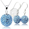 Fashion Shamballa ékszer szett - kék Shamballa maga az elegancia és a ragyogás. A színes cirkónia kristályok csillogást hoznak az életedbe. Aprólékos kidolgozású ékszer, ami feldobja hétköznapi viseletedet vagy kiegészíti alkalmi öltözeted. Bátran viselheted egy üzleti találkozón vagy randin, de a mindennapi öltözéked részeként is felhívja rád a figyelmet.A shamballa ékszerekben a kövek színe nagy jelentőséggel bír, spirituális erőt tulajdonítanak nekik. M