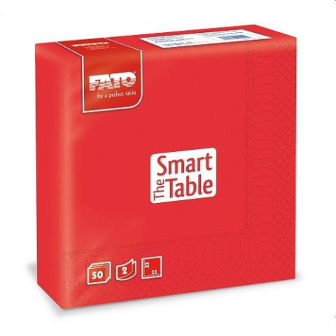 FATO szalvéta, 33x33cm, piros, 2 rétegű, 50 lap/csomag, - 2 rétegű szalvéta - 1/4 hajtogatott - 33x33 cm/lap - piros színű - 50 lap/csomag