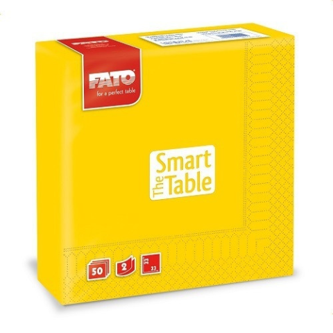 FATO szalvéta, 33x33cm, sárga, 2 rétegű, 50 lap/csomag, - 2 rétegű szalvéta - 1/4 hajtogatott - 33x33 cm/lap - sárga színű - 50 lap/csomag