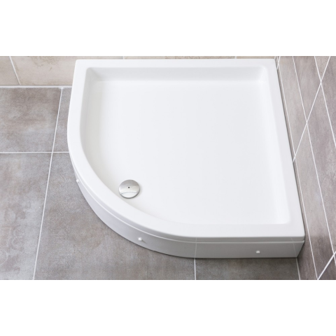 Favorit STEP zuhanytálca íves. Műszaki adatok: Színe: fehér Anyaga: akril Forma: íves Mérete: 80x80x17,5cm Levehető előlap Felületkezelés: csúszásgátlás Vázszerkezet állítható vízszintező lábakkal 50 mm-es szifon ( nem tartozék ) Szaniterakril Választha