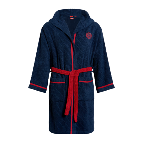 férfi fürdőköpeny kapucnival FC Bayern München Az FC Bayern München LOGO kapucnis és hosszú ujjú férfi fürdőköpeny kiváló termék az FC Bayern München futballcsapat rajongóinak. Ez a fürdőköpeny kiváló minőségű 100% pamutból készült, amely kényelmes és kellemes érzést garantál a testen. A köntös mellén piros hímzett FC Bayern München logó található, ami kivételes és elegáns megjelenést kölcsönöz neki. A motorháztető extra kényelmet és meleget b