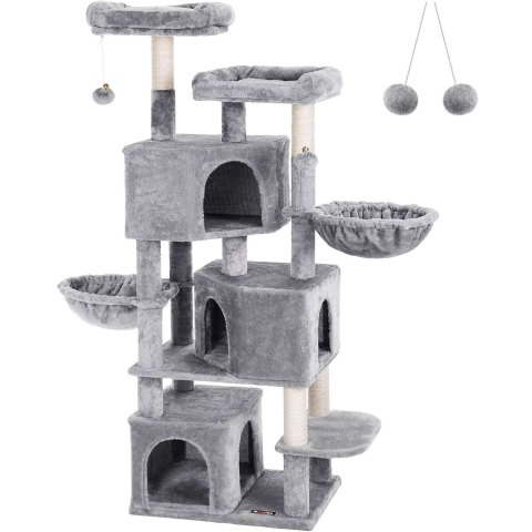 Tedd fel kérdésed a(z) Feandrea Cica játszóegyüttes, fa típusú, fával és rejtekhellyel, 55x40x164cm, világosszürke termékről!