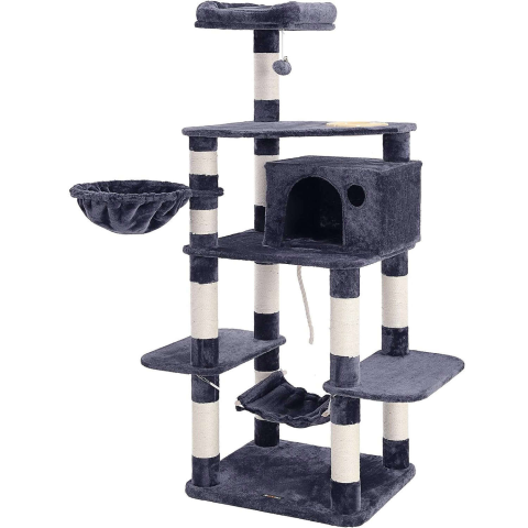 1 kép Feandrea játszószett macskáknak, fa típusú, ággyal és búvóhellyel, 90x50x164cm, antracitszürke