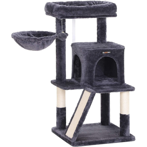 Feandrea Kaparóoszlop kaparólappal 96 cm Sötét szürke játék macskáknak 1 kép