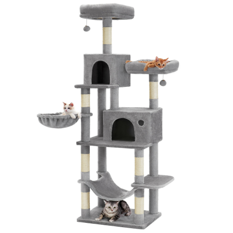 FEANDREA Szürke Macskatorony - 199 cm, Búvóhelyekkel és Karomélezővel 🐾 Ez a kompakt, 199 cm magas FEANDREA macskatorony tökéletes játszó- és pihenőhelyet biztosít cicád számára. Két búvóhely, egy függőágy és 10 karomélező oszlop gondoskodik a macská...