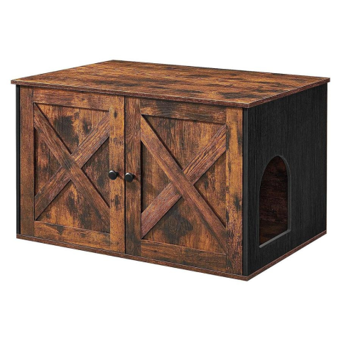 FEANDREA macskaalomtálca szekrény ajtókkal macskaalomhoz Macskaház Könnyű összeszerelés Vintage Barna Fekete:[Stílusos macskaalom] Rusztikus stílusával és elegáns pajtaajtóival ez a macskaalomdoboz könnyedén illeszkedik a legtöbb életstílushoz, és macskája csendes helyét igazi szemrevalóvá varázsolja.[Több magánélet, kevesebb szag] A zárt konstrukciónak köszönhetően ez a macskaalomdoboz privát helyet biztosít, ahol macskája biztonságban érzi magát a sürgő