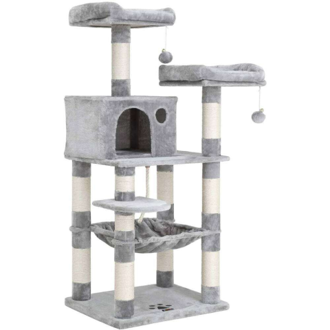 FEANDREA Világosszürke Macska Mászóka Barlanggal - 143 cm: A tökéletes játszótér cicádnak! 😻 Ez a stabil macska mászóka ideális hely a cicád számára a játékra, pihenésre és a karmok élezésére. Kompakt méretének köszönhetően kisebb lakásokban is kénye...