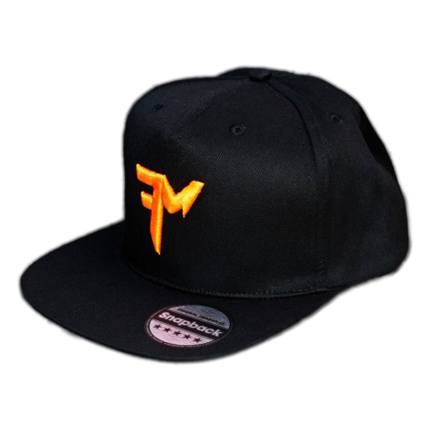 Fekete alapon, narancssárga 3D hímzett FM logóval ellátott sapka. Állítható méretű .Trendi és divatos hatású,fiatalok által igen közkedvelt viseletű SNAPBLACK sapka.