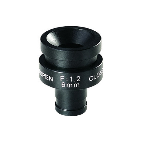 Kézi állítású írisz 6 mm-es lencsével Az írisz főbb jellemzői 6 mm-es lencse. 44.3° látószög. F/1.2 fényerő. Kézi írisz beállítás. 1/3 colos M12x0.5 foglalatba. Mérete: 29 x 32 mm. Súlya: 27 g. CE minősítés. ISO 9001 minősítés.