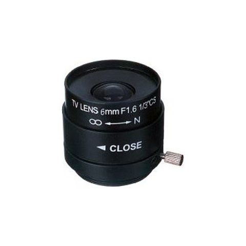 Kézi állítású írisz 6 mm-es lencsével Az írisz főbb jellemzői 6 mm-es lencse. 51.2° látószög. F/1.6 fényerő. Kézi állítású írisz. 1/3 colos CS foglalatba. CE minősítés. ISO 9001 minősítés.