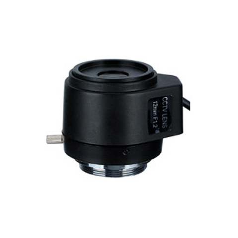 DC vezérelt autoírisz 12 mm-es lencsével Az írisz főbb jellemzői 12 mm-es lencse. 28° látószög. F/1.2 fényerő. DC vezérelt autoírisz. 1/3 colos CS foglalatba. CE minősítés. ISO 9001 minősítés.