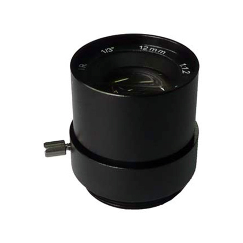 Fix írisz nagy felbontású kamerákhoz, infrafény szűrővel és 12 mm-es lencsével Az írisz főbb jellemzői 12 mm-es lencse. 22° látószög. Nagy felbontású (megapixeles) kamerákhoz is használható. IR (infrafény) szűrő nappali/éjszakai kamerákhoz. F/1.2 fényerő. Fix írisz. 1/3 colos CS foglalatba. Méretek: 30 x 40 mm. Súly: 50 g. CE minősítés. ISO 9001 minősített gyártás.