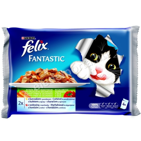 Teljes Félix Felix Fantastic - Csirke és Marha Zöldségekkel aszpikban 4 x 85 g termékleírás