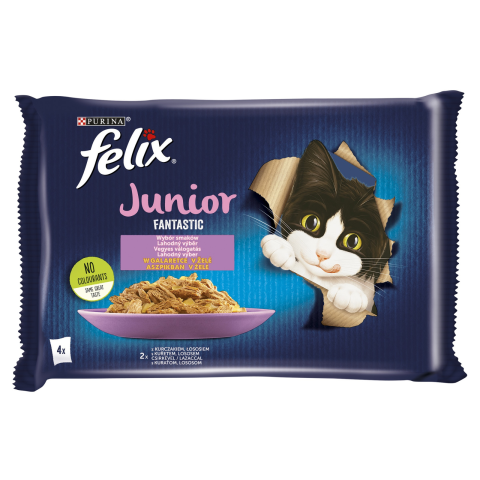 Félix Felix Fantastic JUNIOR 4x85g Csirkével,Lazaccal aszpikban macskaeledel termékleírás