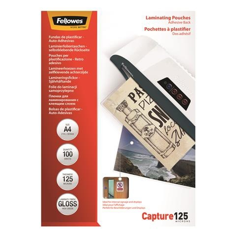 1 kép FELLOWES 125mikron, A4, öntapadó, meleglamináló fólia, fényes