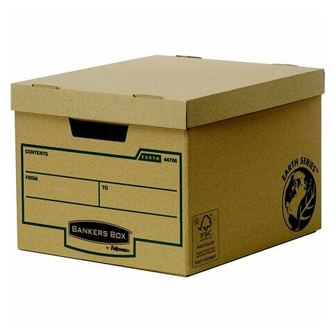 Archiválókonténer, karton, standard, BANKERS BOX® EARTH SERIES by FELLOWES® (IFW44706) - Erős szerkezetű, dupla falú kartonból készült - 4 db 80 mm-es A4-es Earth Series irattartó tárolására alkalmas - FSC által ajánlott - 100%-ban újrahasznosított