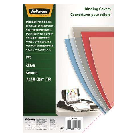Előlap, A4, 150 mikron, FELLOWES, víztiszta - Átlátszó előlap spirálkötéshez - Méret: A4 - Vastagság: 150 mikron - Kiszerelés: 100 db/csomag - Szín: víztiszta Gyártó/első EU forgalmazó elérhetősége: Fellowes Holdings B.V. Gesworehoekseweg 3a 5047 TM