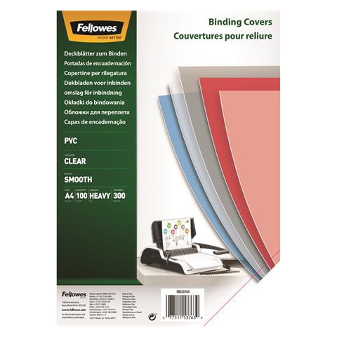 Előlap, A4, 300 mikron, FELLOWES, víztiszta - Átlátszó előlap spirálkötéshez - Méret: A4 - Vastagság: 300 mikron - Kiszerelés: 100 db/csomag - Szín: víztiszta Gyártó/első EU forgalmazó elérhetősége: Fellowes Holdings B.V. Gesworehoekseweg 3a 5047 TM