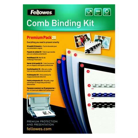 1 kép FELLOWES Kezdőcsomag műanyag spirálozáshoz, prémium, 20 dokumentum bekötéséhez, FELLOWES