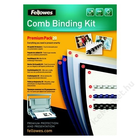 Kezdőcsomag műanyag spirálozáshoz, prémium, 20 dokumentum bekötéséhez, FELLOWES (IFW53718) A csomag tartalma: - 5 db 6 mm-es fehér műanyag spirál; - 10 db 8 mm-es kék műanyag spirál; - 5 db 10 mm-es fekete műanyag spirál; - 5 db A4-es, 250 g/m2, matt,