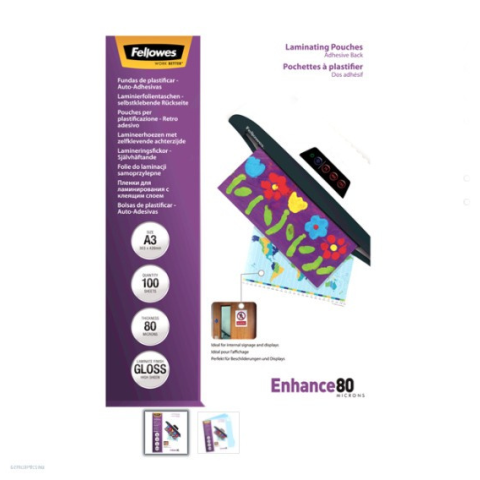 1 kép FELLOWES Lamináló fólia A/3 fényes 80 mikron öntapadó hátlappal