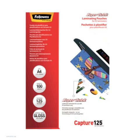 1 kép FELLOWES Lamináló fólia A/4 SuperQuick fényes 125 mikron