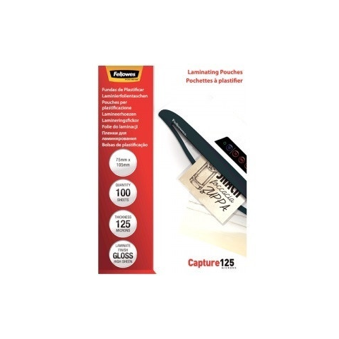 2 kép FELLOWES Lamináló fólia Fellowes 75x105 mm 125 mikron fényes 100/csom