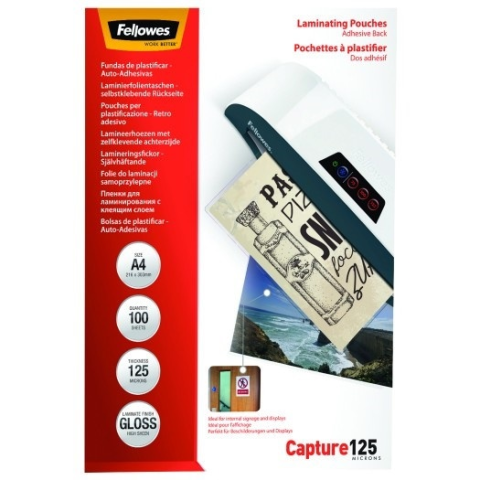 2 kép FELLOWES Lamináló fólia Fellowes A/4 125 mikron fényes öntapadó 100/csom