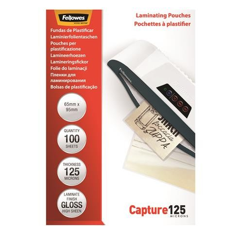 1 kép FELLOWES Meleglamináló fólia, 125 mikron, 65x95 mm, fényes, 100 db, FELLOWES