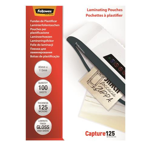 1 kép FELLOWES Meleglamináló fólia, 125 mikron, 83x113 mm, fényes, 100 db, FELLOWES