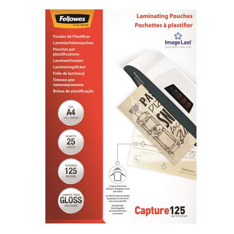 1 kép FELLOWES Meleglamináló fólia, 125 mikron, A4, fényes, 25 db, FELLOWES