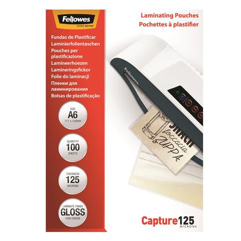 1 kép FELLOWES Meleglamináló fólia, 125 mikron, A6, fényes, 100 db, FELLOWES