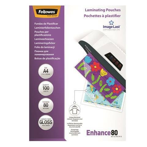 2 kép FELLOWES Meleglamináló fólia, 80 mikron, A4, fényes, 100 db, FELLOWES (IFW53061)