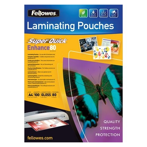 FELLOWES Meleglamináló fólia, 80 mikron, A4, SuperQuick, fényes, FELLOWES