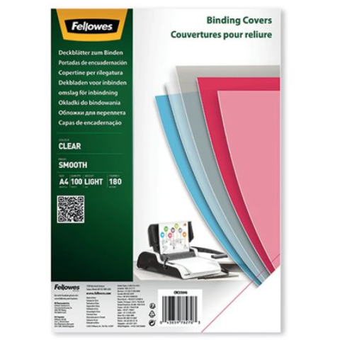 1 kép FELLOWES PET Előlap spirálozáshoz A4 180 mikron víztiszta 100db