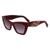 A(z) FERRAGAMO napszemüveg Női viseletre ajánlott. A Műanyag keret tartós és kényelmes viseletet biztosít, a(z) Piros lencsék pedig stílusos megjelenést nyújtanak. Méretei: Lencse szélessége: 55 mm, híd szélessége: 17 mm, szár hossza: 145 mm. Lenc