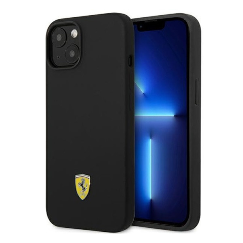 Ferrari Silicone Metal Apple iPhone 14 Plus hátlap tok, fekete