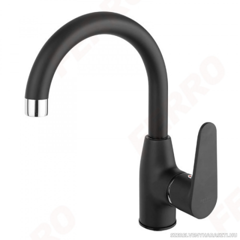 Ferro ALGEO Black álló mosdócsaptelep elforgatható kifolyóval 5 év garancia kerámiabetét elforgatható kifolyócső perlátor M22x1 flexibilis bekötőcső G3/8 - M10x1 fekete színben