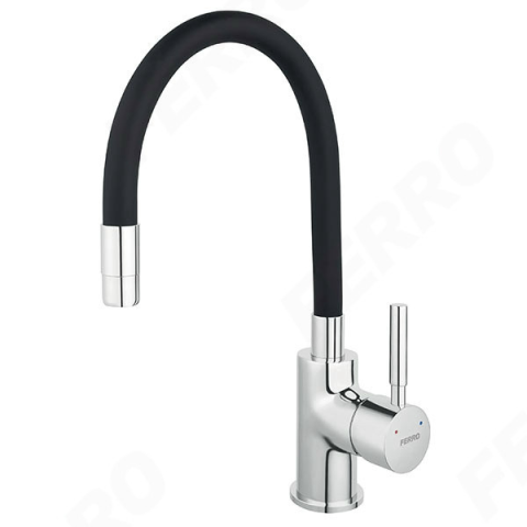 1 kép Ferro Álló mosogatócsap elasztikus kifolyóval, Zumba, Fekete, Ferro