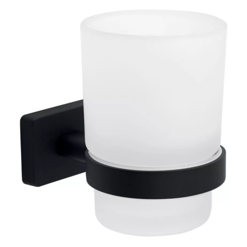 Ferro Fürdőszobai pohár tartóval, matt fekete, Greta, Ferro fürdőszoba kiegészítő 1 kép