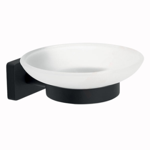 A Ferro Greta Black Szappantartó üvegtál, matt fekete egy falra szerelhető fürdőszobai kiegészítő. A szögletes falitartó konzol és a lekerekített, ovális szappantál kontrasztja modern és harmonikus.