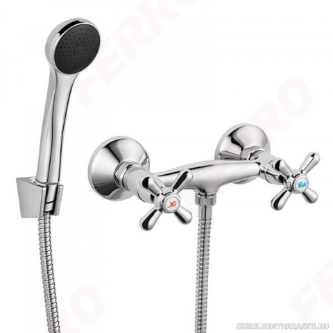 2 kép Ferro RETRO fali zuhanycsaptelep fali tartós zuhanyszettel