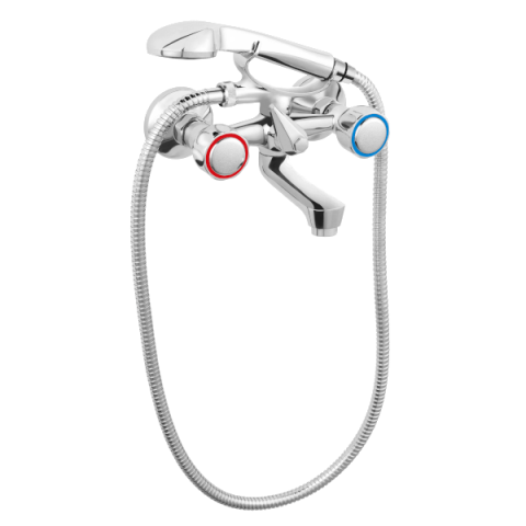 1 kép    Ferro STANDART KÁDTÖLTTŐ CSAPTELEP FALI ZUHANY SZETTEL KÉTGOMBOS FORGATHATÓ KIFOLYÓ