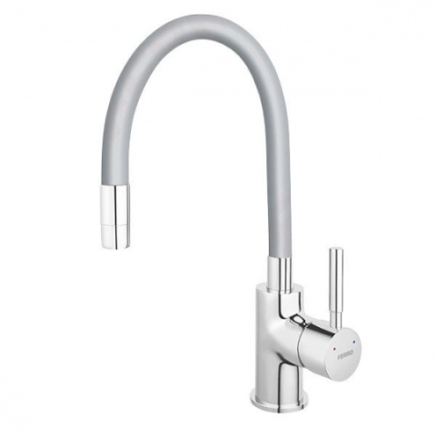 Ferro Zumba BZA4S Álló Mosogató Csaptelep flexibilis kifolyócsővel szürke, egy kerámiabetéttel ellátott csaptelep, mely hosszú nyakának és hajlékonyságának köszönhetően könnyen és kényelmesen használható.