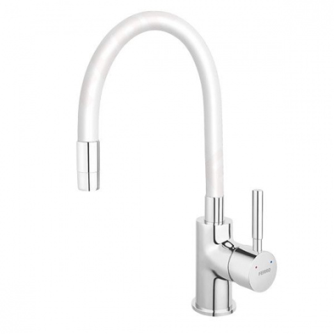 Ferro Zumba BZA4W Álló Mosogató Csaptelep flexibilis kifolyócsővel fehér, egy kerámiabetéttel ellátott csaptelep, mely hosszú nyakának és hajlékonyságának köszönhetően könnyen és kényelmesen használható.