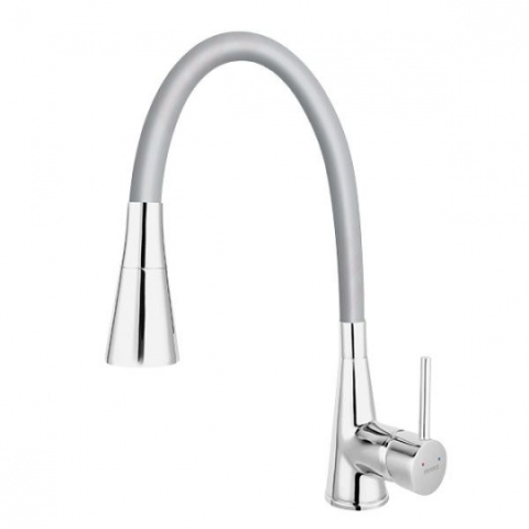 Ferro Zumba II BZA42S Álló Mosogató Csaptelep flexibilis kifolyócsővel szürke, egy kerámiabetéttel ellátott csaptelep, mely hosszú nyakának, hajlékonyságának és különleges többfunkciós zuhanyfejének köszönhetően könnyen és kényelmesen használható.