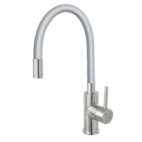 ZUMBA inox konyhai csaptelep, acél test, ezüst kifolyó.