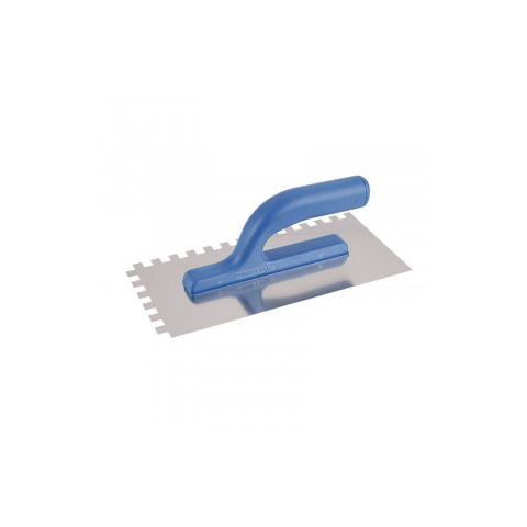 Rozsdamentes E10 fogazott simító FESTA 130x280mm Műanyag nyéllel, lemezvastagság 0,8 mm. Elsősorban csempék és burkolatok alá ragasztók felhordására, valamint esztrichek, stukkó, vakolatok, tömítőanyagok és egyéb építőanyagok felhordására használják. A rozsdamentes fogazott simító lehetővé teszi a ragasztó vagy építőanyag nyújtását csíkokban és a simító fogának megfelelő magasságban.