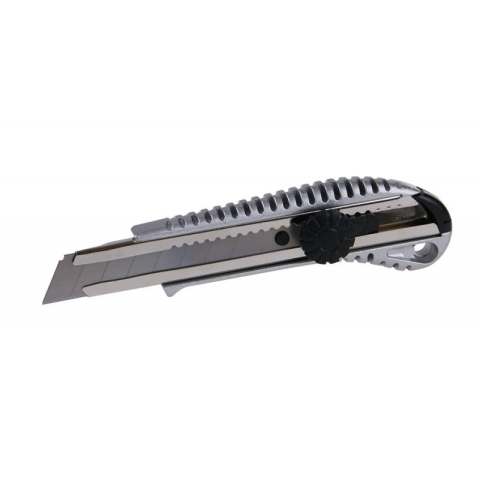 A termék leírása: 18 mm-es tapétavágó kés fém test, csúszásgátló hornyok, acél vezetősín, csavaros zár.